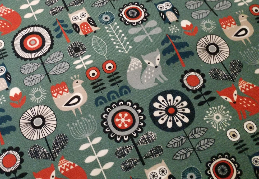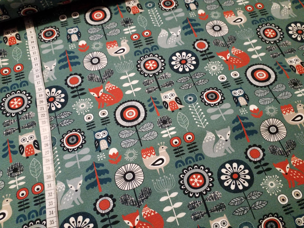 Woodland animals, scandi, sea green, Brushed Back French Terry, alpine fleece