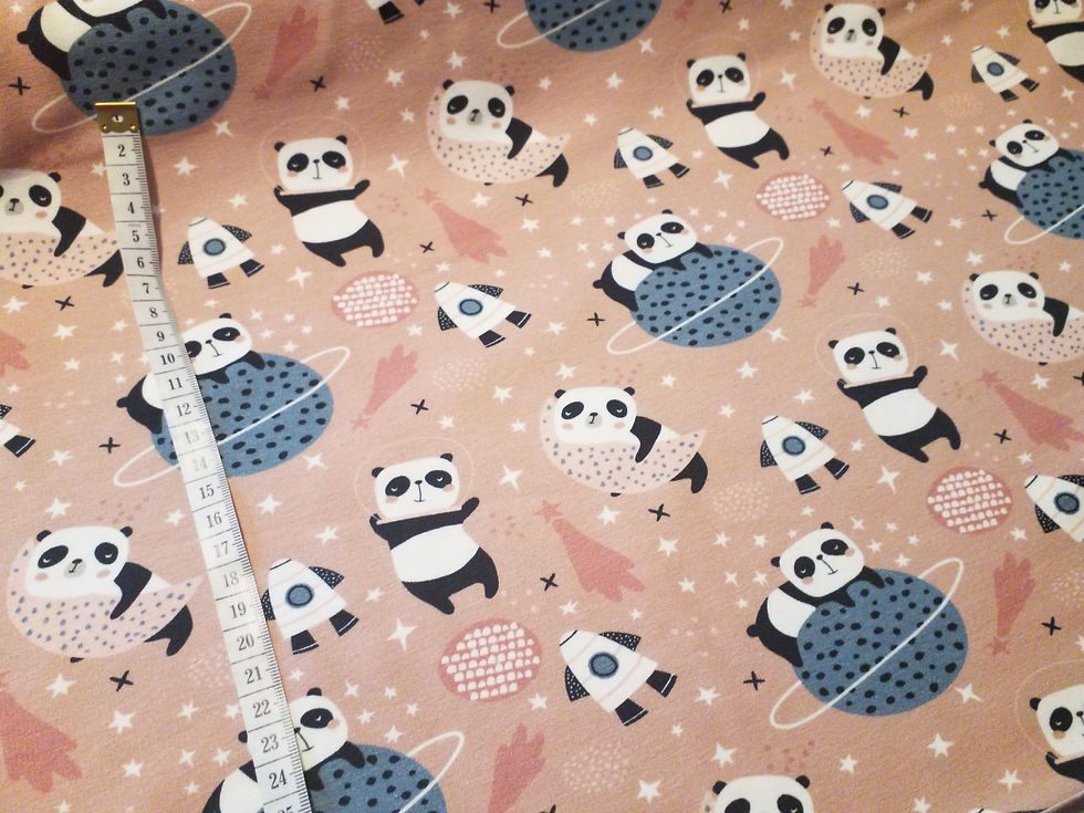 Panda on planet, light pink, Brushed Back French Terry, alpine fleece