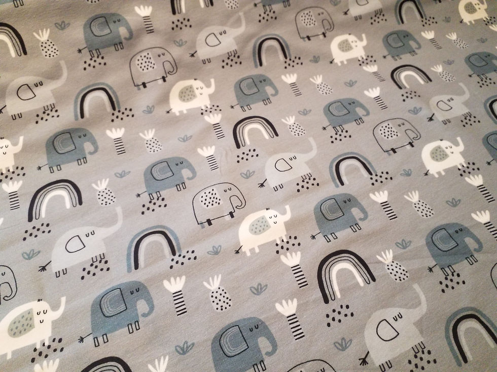 Elephants, ice blue, Brushed Back French Terry, alpine fleece
