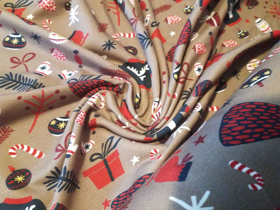 Christmas dinos, camel background, Brushed Back French Terry, alpin